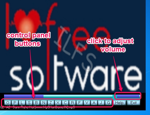 Apart from these menu buttons, you will find two bars at the bottom part of its interface; one is used to push forward or move backward playing media file and the other one is used to adjust the volume.