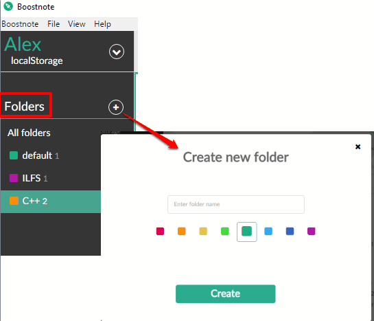 You might have also noticed that its interface is a bit similar to Evernote and OneNote; not in terms of color and appearance, but in terms of sections. The left section shows all the folders added by you so far. You can also create a new folder with a custom name and select any of the available colors for folder using this section.