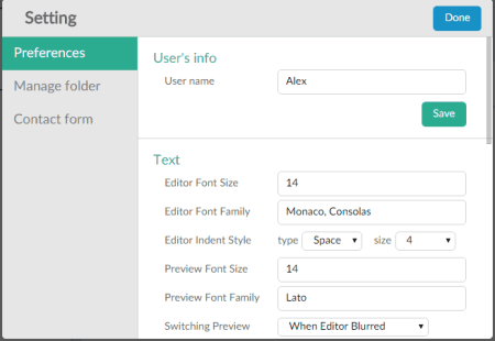 In case you want to change text size, preview font type, preview font size, and adjust some other settings, you can access Preferences using the icon available on the left section.