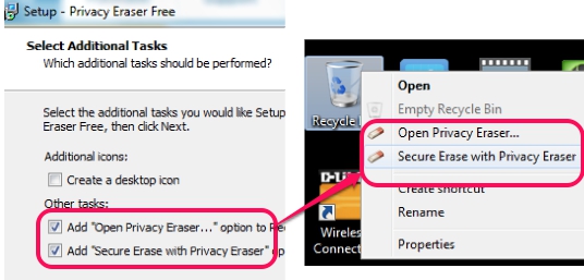 You can download this free PC cleaner using the link I have placed at the end of this review. Its installation is simple and some additional tasks, like Open Privacy Eraser interface and Secure Erase recycle bin items with Privacy Eraser using context menu can also be added.