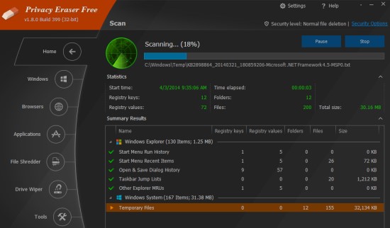 Privacy Eraser is a free PC cleaner software that is used to scan PC, including web browsers, and helps to remove junk files. It can also be used to delete temporary files, Windows search history, memory dump files, browsers cache files, history, cookies, auto complete form history, Windows log files, invalid desktop shortcuts, and more. Thus, it’s a good system cleaner which helps to remove unwanted information.