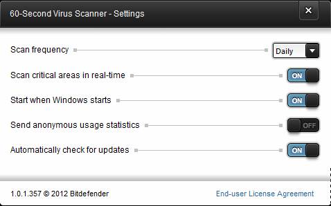 As you can see from the screenshot above, this is a very simple virus scanning utility, it’s basically a desktop widget. System tray icon is also available and when you close the “interface” it’s gonna minimize to the system tray where it will still work because BitDefender 60 Second Virus Scanner offers proactive, real-time protection.