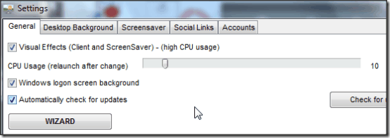 - You can go to each tab, like: General, Desktop Background, Screensaver, Account, etc. to customize the settings. Or you can directly use Wizard option on General tab to quickly adjust the required settings.
