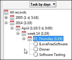 Task by Days lets you view tasks performed on any date. It makes it easy for you to browse the tasks accomplished on particular dates. To view using this option, you must select a date. If you select week or month, then it will not display any task in the list.