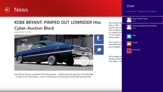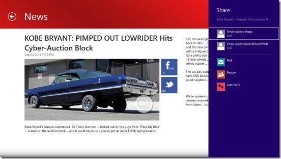 I also like the fact that the app lets you share the stories you like with friends using the Windows 8 Share Charm (Win + H) or post the link of the story in Facebook or Twitter, by clicking on their respective buttons present at the news story screen.