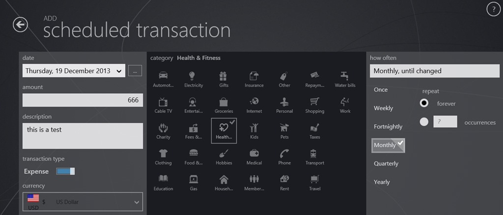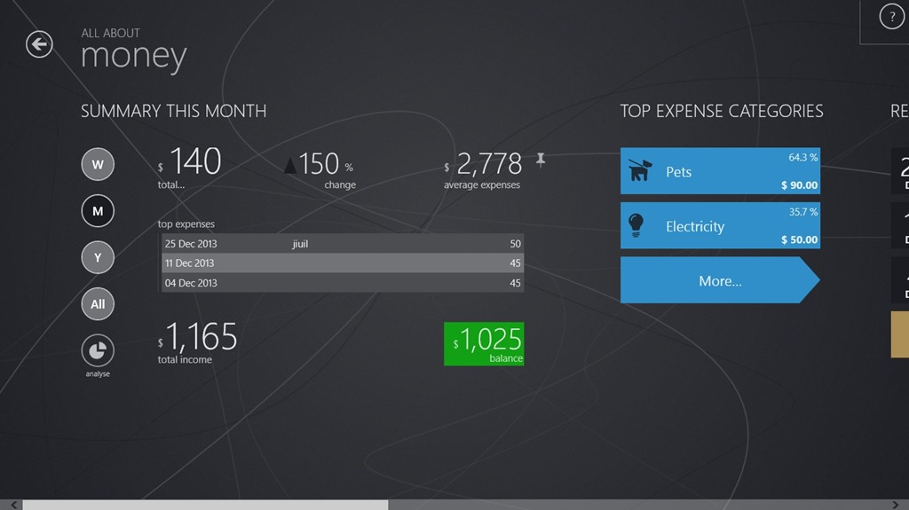 All About Money is quite a nice Windows 8 Finance manager that will help you to keep track of your Income and expenses. You can even schedule transactions for future need. It is a nice app, and deserves a try for sure.