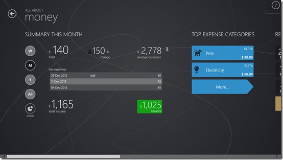 All About Money is a Windows 8 Finance Manager app. You can use it to keep track of your financial transactions like Expense and Income for your home, office, and other places.