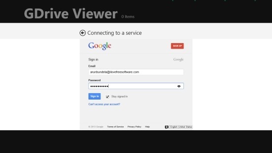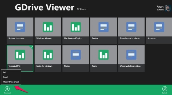 GDrive Viewer is a similar attempt to bring a Google Drive Client for Windows 8. This app is not the perfect solution as it lacks certain features but it gets things done. This Google Drive client for Windows 8 allows you to view all your Google Drives contents in a nice looking tile based interface.