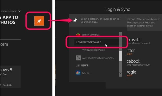 On launching this Windows 8 news reader app for first time; it asks you to click – choose a news category of your choice. Once you do that, you’ll automatically start getting news from that category. I liked the fact that the app made it very easy to add/remove a source from the app; and it is quite commendable that the app itself has a huge set of inbuilt sources. Therefore, not only you can choose and add a news sources from the list of inbuilt sources, but also you can add a custom website by using the source search feature.