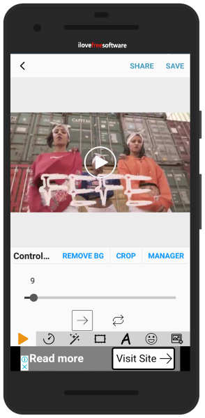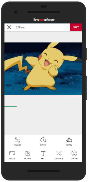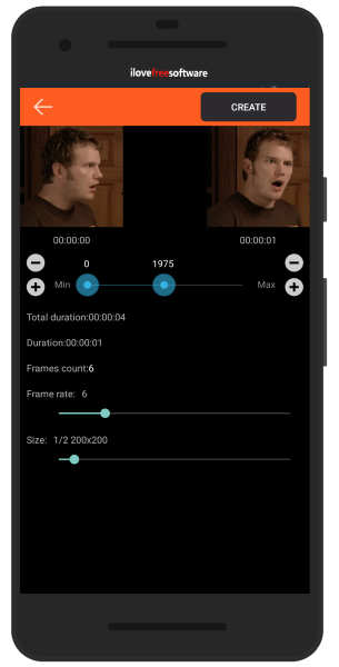 The app lets you create GIF from the images, camera, and videos. Here, you can add a video from your phone gallery. Once you import the video then you can adjust it by applying effects. You can manage the frames by deleting them in between. Also, you can change the speed from fast to slow.
