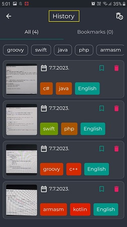 Photocode is an AI powered programming helper for Android that enables you to analyze, understand and debug any source code from photographs. It is compatible with more than a dozen widely used programming languages and supports more than 20 different languages. Photocode saves all your analysis history automatically so that it can be reviewed at a later stage whenever required. The saved analysis cam be shared with your friends and colleagues using a range of popular platforms.