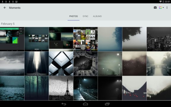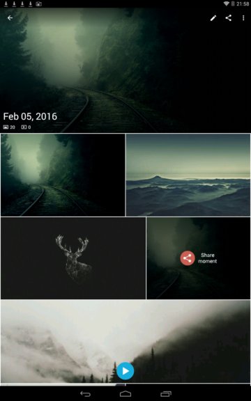 Gallery itself will automatically detect images on your device, regardless of where you saved them (exclusion possible to setup in settings). They are grouped in folders by default, but you can activate something called “Moments” if you want which will group images based on the month that they were taken. Other features include Wifi image sharing and find tool.