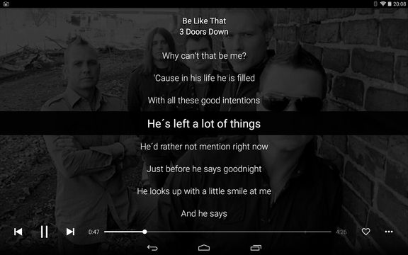 Musixmatch is an alternative music player for Android that I only recently discovered. It’s key feature is the inclusion of lyrics fetching and playback alongside the standard music playback.