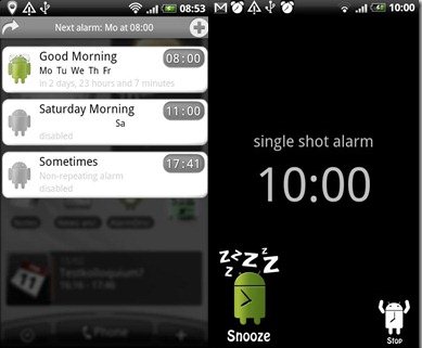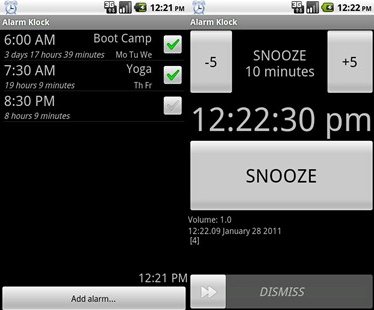 Free alarm clock apps for Android features Alarm Clock Plus in a dominant position. Gaining a physical approach towards alarm clock, it features analog and digital format. Since it is available for free, you can simply download it from Android Market and install it on your phone.
