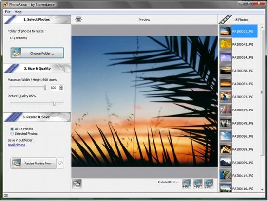 Photo Razor is an easy to use software to reduce image size or resize images. This image resizer works fine with photos taken by digital camera. With the help of this free image resizer, you can batch resize images and adjust the quality of image. This free image resizing software keeps the original images as it is, and basically creates a copy of original images in the form of resized images. This image resizing software is easy to use and supports most popular image formats like PNG, BMP, JPEG, GIF. You can even rotate images, preview images before resizing them.