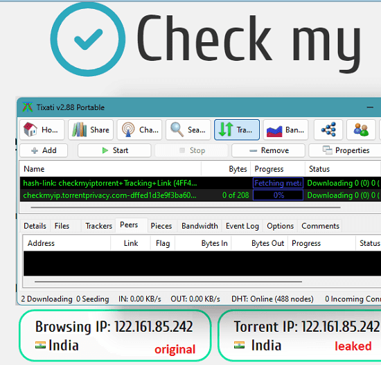 This post talks about some of the best free torrent IP checker tools that you can use to find out IP leaks. If you seed or leech torrents with or without VPN then you must be sure that your torrent client or tracker is not leaking your IP address. There are some free tools for that and I will talk about 5 of them in the post below. These torrent IP checkers check your torrent client via torrent file or magnet link and show you whether your IP is leaking.