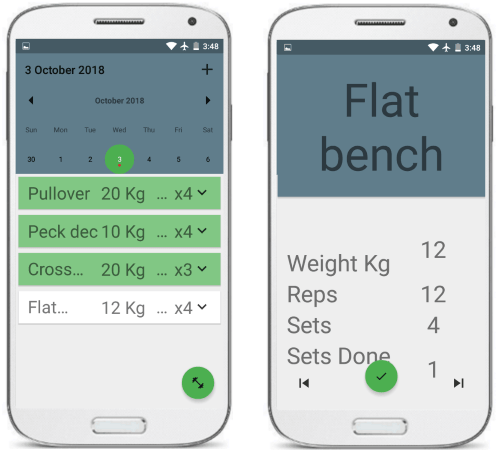 Get this app, install it and then start using it to log all the workouts that you do. From the main interface, tap on the “+” icon and then fill out the workout details. It mainly asks you to fill the details like reps and weight. You can select any exercise from the list and add that to your day. You can save the data that you enter and log exercise in this way daily. There is a calendar in it that you can open and select any date from it to see the corresponding exercises. You can also share them easily.