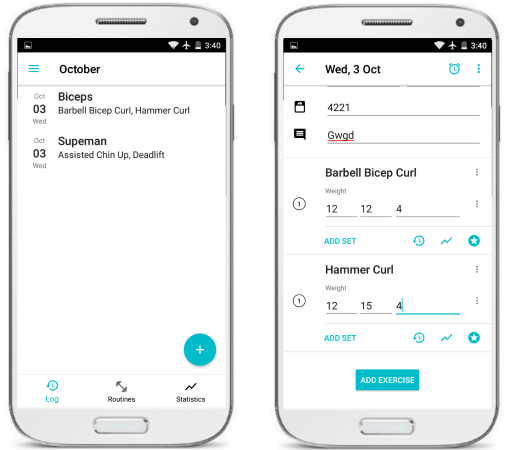 If you are a fitness freak then you should log your daily exercises. If you are not getting the expected results then you can audit your workout log and then make the necessary changes. Also, you can share your log with others as well using these apps. To log an exercise, you just have to select it and these apps will add that to today’s date. Along with an exercise, you can add the details like weight used, sets, reps, time, notes, etc.