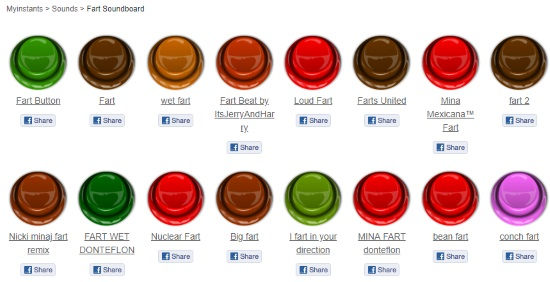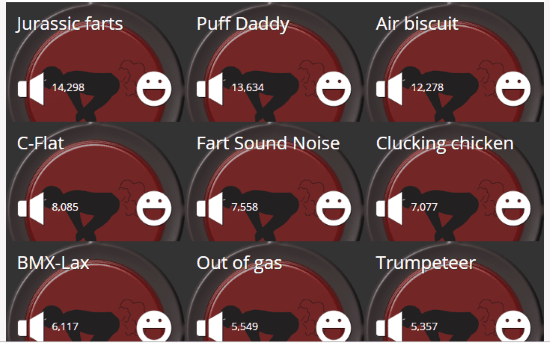 You can use the search bar to find out the sound you want to play. The site has a large number of soundboard buttons. Also, you can find the variations in farts. Once you click the button, it makes fart sound which sounds quite hilarious.