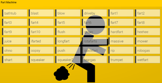 One of them is a Fart soundboard which has a collection of funny sound effects. This is like a perfect soundboard game. You can click on the multiple buttons and the soundboard starts making strange fart sounds. You can stop all the sounds by using the Space bar.