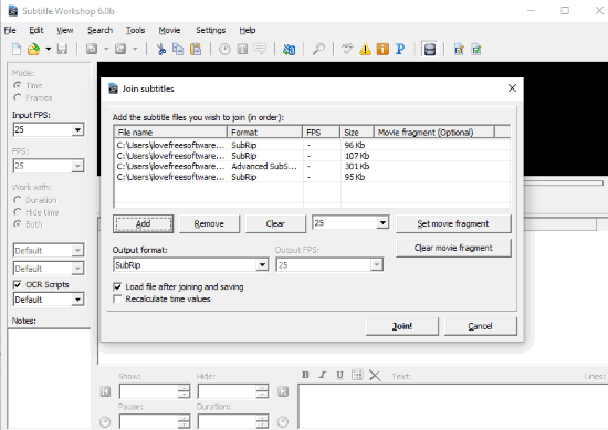 Subtitle Workshop is an all in one free subtitle creator, subtitle editor, subtitle converter, subtitle splitter, and subtitle joiner software. Its subtitle merger feature is pretty impressive as you can join more than 2 subtitles files at a time with just a few mouse clicks. This simply means that batch subtitle merge is supported here. You can also arrange the order of subtitle files before merging them.