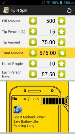 Here’s a list of 5 tip calculator apps for Android which you can use to calculate tips on your smartphone or tablet. Apps that calculate tips are intended to make life easier when you’re dinning out and a tip has to be left but you have no clue how much 15% of the total bill amount is, for example. Most people can work out the tip themselves, but if you’re lazy or the tip is really hard to figure out, then these tips are just the thing you need.