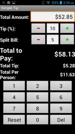 Despite the next app being called Simple Tip Calculator, this tip calculator app still offers the same kind of info that you get with Tip N Split.