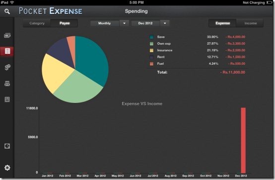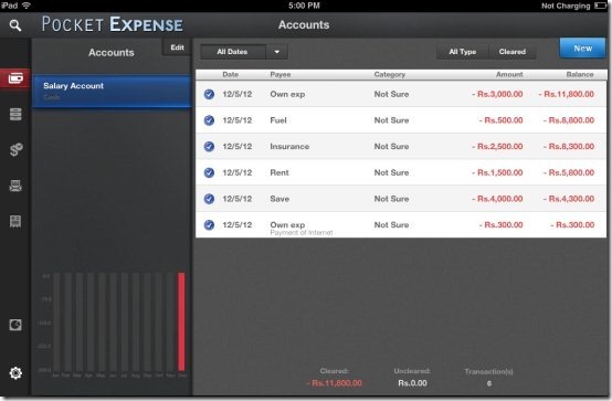 Pocket Expense Personal Finance is the first app which I found in App Store that gives simple and easy to use interface to keep a track of all the expenses and incomes. If you want to make your financial transactions personal, then you can protect the app by a passcode. This is like one of the must have features for an app which stores all your personal data.