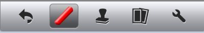 The first icon of a curved arrow is for undoing the previous draw move that you made. The second icon with a chalk is for choosing between brush or chalk and selecting a color. You also get the option to choose smudge effect or eraser from this icon. The third stamp icon provides you stamps with sound effects, stencils and text box that can be inserted in your drawing. The fourth icon which looks like a photo frame gives you background option for your photos.