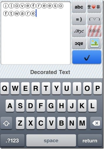 Do note that this app does not replaces your iPhone keyboard. Instead, you open this app like any other app, use the smart keyboard that is inbuilt to create your creative text, and then copy that text to any other application / email.