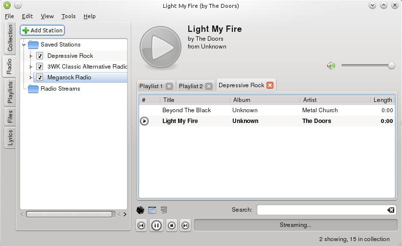 If you want to switch over to online radio, select the Radio tab and there click on Add station. Small window will appear where you can add the URL of the radio station, Shoutcast is fully supported. If you want to, you can export and save playlists. System tray icon is also available.
