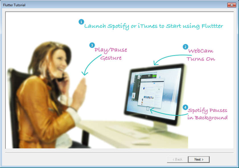 With that being said, there are still a lot of situations where you can use Flutter. For example if you are having a party and you want to impress people, you can just walk up to your computer, Flutter will automatically detect you while you come up to the camera, it will be running in the system tray, and you can wave your hands to start the music, very cool addon indeed, use it for free.