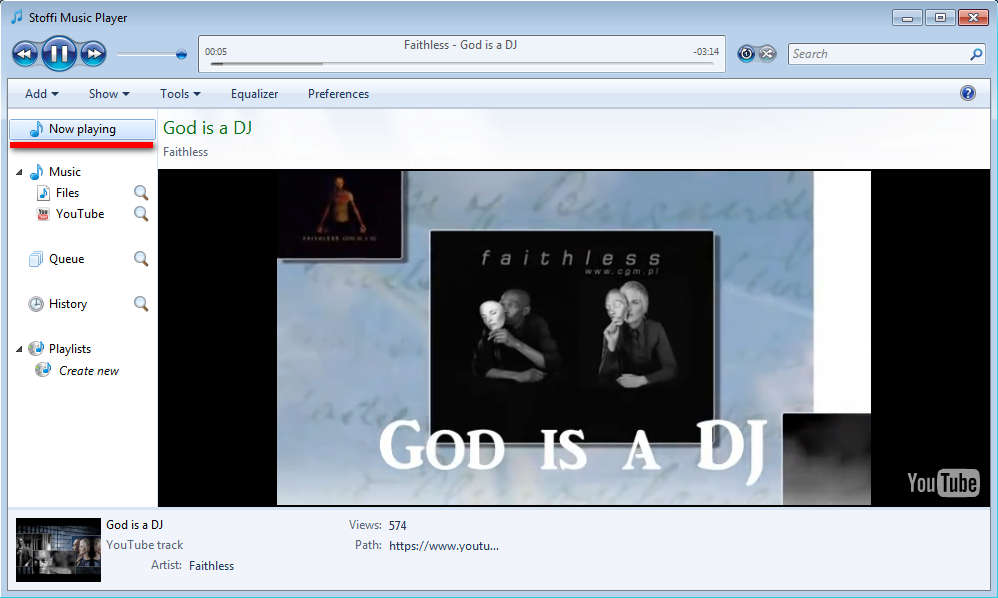 To watch YouTube videos you’re gonna have to click on the Now playing sidebar option look above Music section again in the left sidebar. Stoffi music player uses Internet Explorer in order to display videos, so make sure that you have both IE and flash installed when you’re trying to watch YouTube with Stoffi.