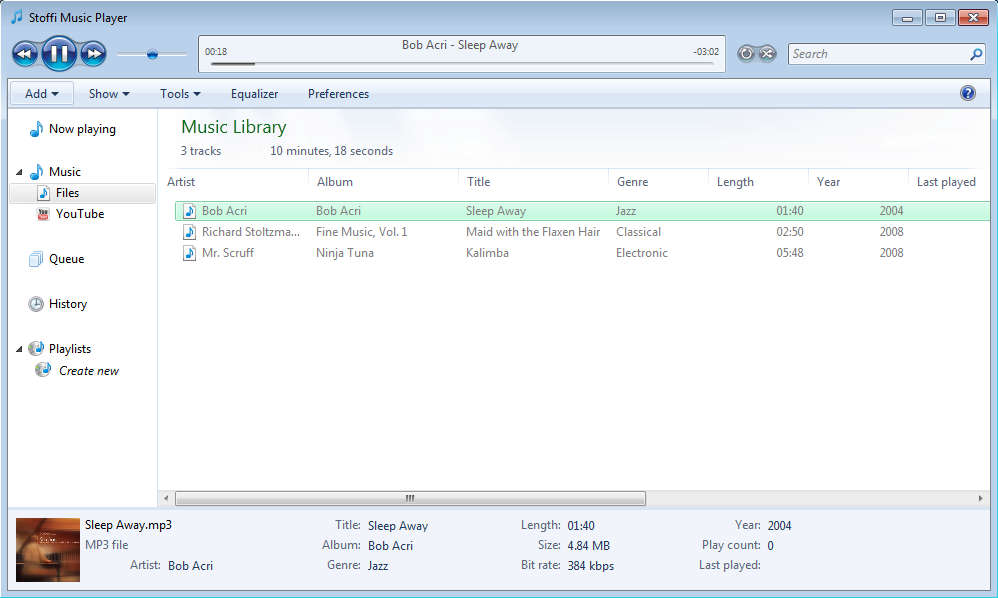 Stoffi is a free and lightweight music player made specifically for Windows 7, which can, next to songs, also play YouTube videos. This free audio player focuses on integration with both Windows 7 interface and on integration with the user’s My Music folder, it will scan your music collection immediately after it’s started for the first time in search of music files, and if any are found they will be automatically added to the library.