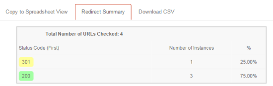 Besides this, there are options to Copy to Spreadsheet View, Redirect Summary, and Download CSV.
