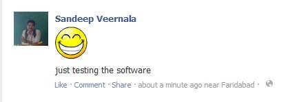 Just click on your required emoticon and post it or use it in your mail. Express your feelings with a bigger emoticons. This software add-on also appears in chat but it’s not working well. If both the users have this software installed then it might work well in FB chat and Gtalk chat also.