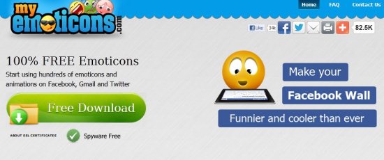 My Emoticons is a free software to add emoticons, and smileys to Facebook status updates. Download My Emoticons Free and add emoticons to Facebook status, Gmail, and Twitter updates also.