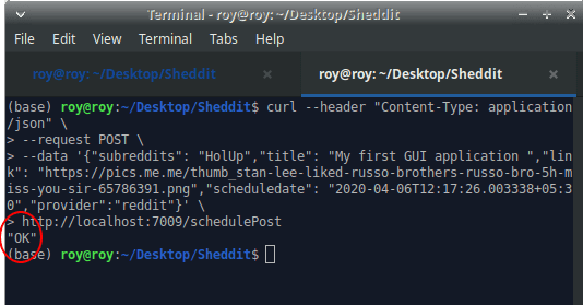 Now, you just make a POST request to the local endpoint and then you are simply done. If you receive the “OK” response then it means your post has been scheduled in the database.