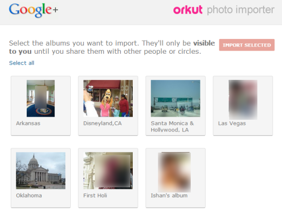 - When you selected all albums which you want to transfer from Orkut to Google+, click on Import Selected at top right corner and wait for sometime.