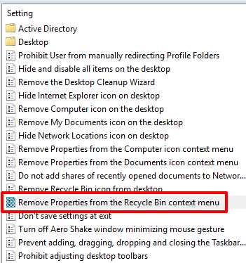 Step 3: Now double-click the “Remove Properties from the Recycle Bin context menu” option available at the right-side.