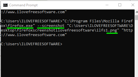 "C:\Program Files\Mozilla Firefox\firefox.exe" --screenshot "C:\Users\ILOVEFREESOFTWARE\Desktop\firefoxscreenshotilovefreesoftware\ilfs1.png" "http://www.webpageaddress.com"