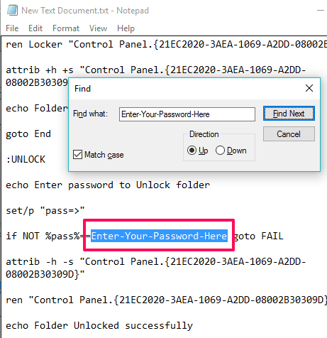 Step 3: After pasting the code in that text file, you need to search for “Enter-Your-Password-Here” text. Replace that text with a password of your choice.