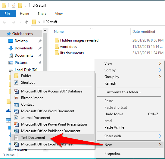 Step 1: First of all, open the folder which contains your important folder(s). After this, create a new text file by right-clicking on the empty area → New → Text Document.