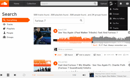 SoundCloud (free subscription plan) is the widely used social sound platform where artists and other users can upload their digital audio tracks. You can also listen to sound tracks of any user and explore more and more music. Moreover, you can also follow other people, like music tracks to add to favorites, and add comment to any part of the audio track.