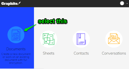 When you are signed in to your Graphite account, you will see four options: Documents, Sheets, Contacts, and Conversations. Use “Documents“option.