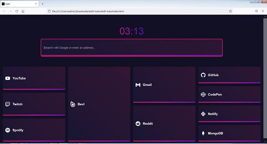 6. Open a new browser window or a new tab and see the Shelf start page in action.