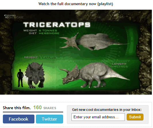 You can find documentaries related to Environment, 9/11, Mystery, Comedy, Biography, Health, History, Sports, Technology, Science, and more. Apart from this, you can also check featured documentaries, recently added, highest rated, most shared, and most voted documentaries. Just search for the documentary of your interest and watch it online free on this website.