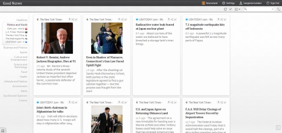 Good Noows is a free online RSS Reader that lets you read the latest news and RSS feeds from your favorite sites. It’s a simple, yet elegant RSS feed reader that combines the latest posts from multiple news and RSS sources and presents them for you in a beautifully organized format. Good Noows comes pre-loaded with several news sources and allow you to add more sources of your choice.