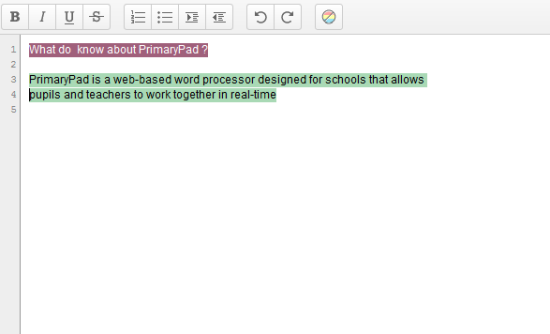 - The interface of PrimaryPad free online word processor contains a large text window for typing text. Whatever you will type or paste on it, will be shared in real-time. To differentiate the text entered by every user; PrimaryPad adds color to it.