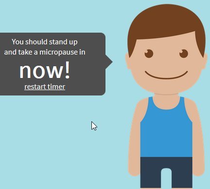 As soon as you land on the website it will start a countdown timer of 20 minutes. The timer will instruct you to take a break after 20 minutes, even if it is for a minute. During you break time you should get up from your chair and move around a bit. This will help your body relax and refresh you as well.